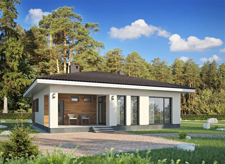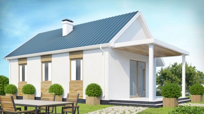 Едноетажни къщи с площ от 60 квадратни метра могат да бъдат направени от блокове от пяна. В този случай външната фасада е покрита с бяла или светло бежова боя. Отворите за прозорци и врати, както и покривите, трябва да бъдат декорирани в тъмно сива палитра. Допустимо е да се завърши малка част от сградата с висококачествена дървесина..