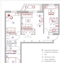 Прост типичен план включва просторна всекидневна (20-25 кв. М.), Една или две спални, кухня или кухня-трапезария, една комбинирана баня, балкон и малко антре. Има и проекти, които имат малко проучване..