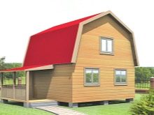 Ако говорим за изграждане на градинска къща, проектът може да не включва баня. Според оформлението сградата ще има само една спалня, голяма всекидневна и доста уютна кухня, която се отваря към трапезарията. Ако е възможно да се построи таванска стая, тя се превръща в спалня. Увеличаването на пространството, както е споменато по -горе, е възможно за сметка на верандата, която може да бъде отворена или затворена, всичко зависи от вашите лични желания.