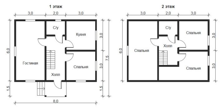 Има и други методи, които често се използват по време на строителството и имат отлични характеристики. Така че, ако решите да построите къща с размери 6×8 m, първо изберете проект и решете местоположението на стаите.