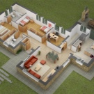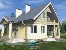 Къща с тавански етаж е външно привлекателен вариант, особено ако е осигурен уютен, красив балкон.. В допълнение, таванското помещение осигурява допълнителни кадри за организиране на жилищни помещения в таванското пространство. Общата площ е 224,4 кв. м, жилищна площ – 89.3 кв. м. Къщата има 4 стаи, входната зона е оборудвана с просторна веранда, голяма тераса осигурява допълнителни метри през лятото.