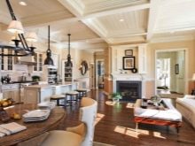 - Прието е американците да комбинират по -голямата част от партерното пространство – антре, хол, кухня-трапезария. Всички тези зони са лишени от вътрешни стени, те са разделени символично, например бар плот, кухненски остров, мебели за хол, рафтове.