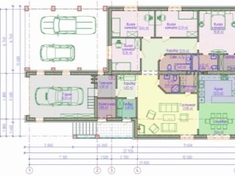 Недостатъците са повишената опасност от пожар, възможността за навлизане на неприятни миризми в жилищните помещения, но правилната вентилационна система ще се погрижи за това.. Проектът на къща на 1-ви етаж от икономична класа предвижда вграден гараж за две коли.