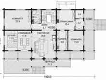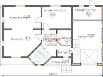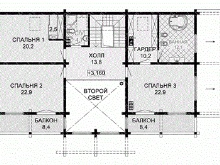 Ако къща е построена от дърво, това не означава, че ще трябва да се откажете от идеята да я допълвате с гараж.. Една от тези опции предвижда подреждането на две всекидневни с площ от 17 и 18,91 кв. m съответно. До тях има кухня и трапезария. Гаражната площ е над 25 кв. м. Има също антре, баня, вестибюл, помощно помещение и веранда, на втория етаж има 4 хола с различни размери и баня.