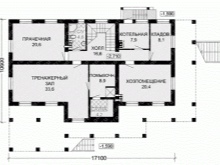 Можете да подходите към разпределението на помещенията по различен начин.. В тази версия забележима част от сутерена се дава на пералнята и фитнес залата. Имаше място и за котелното, и за складовото помещение, и за миещата част. Оборудван със средно голяма баня. Площта на помощното помещение е малко над 20,4 кв. м.