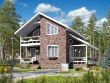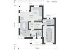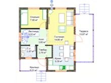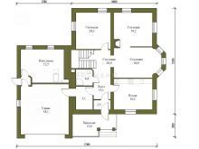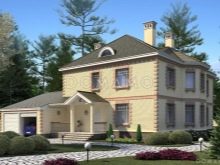 Сгради от този вид често се допълват от голяма веранда. В предложената версия размерът на паркомястото е 38 кв. м. Той е в непосредствена близост до котелното помещение, оборудван по всички стандарти с отделен вход. Площите на хола и стаята за гости се различават доста малко. На приземния етаж имаше също трапезария, коридор, кухня и веранда..