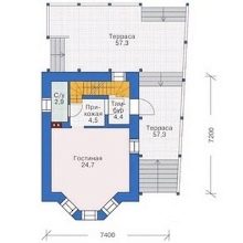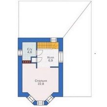 Кухнята и трапезарията бяха разположени на приземния етаж, като умишлено не правеха разлика между тях. Тераса 17,7 кв. m е достатъчно за повечето разработчици. Площта на хола е 15,7 квадратни метра. м. Входното антре също е относително голямо. На тавана беше отделено място за: