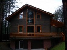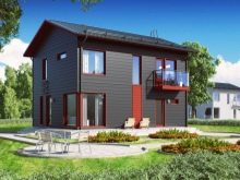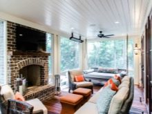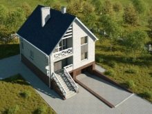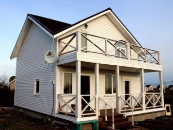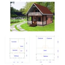 - Значително стърчи от терасата отвъд слепия участък. Къщата е с тераса или в хола според плана, или около нея изцяло. В първия случай терасата се прави изолирана и остъклена – по -късно тя може да бъде превърната във веранда и след това да бъде преустроена в пълноценна всекидневна в съответствие с всички GOST и SNiPs, действащи в Русия. Във втория случай терасата е направена като лятна – предпазва носещите стени на къщата от дъжд, снегонавявания, градушки и повишено излагане на слънчева ултравиолетова радиация, забавяйки разрушаването на тези стени. Тя може да бъде оборудвана с панорамни прозорци с комарници вместо остъкляване – но няма да ви предпази от студа през зимата. Това е просто красиво проектиран балдахин за времето.
