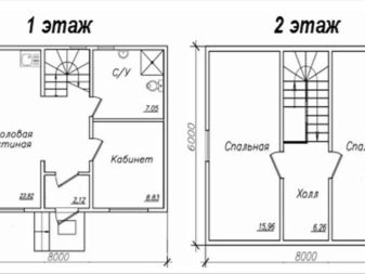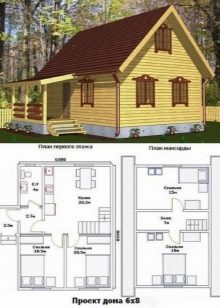 Проектите на двуетажни къщи 6х8 м предоставят, въпреки привидната ограниченост на мястото, заето в лятната вила за такава конструкция, възможност за изграждане на пълноценни два етажа, не отстъпващи по функционалност на един етаж на площ от 12×8 м.
