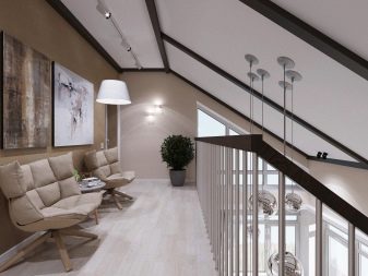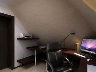 - Част от офис площите могат да бъдат преместени на изолираното таванско помещение. Въпреки това, когато естествената светлина не прониква там, също е невъзможно напълно да се оборудват дневните, както в мазето..