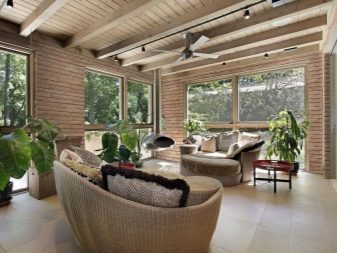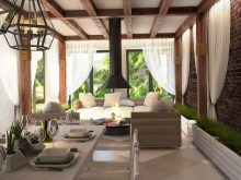 В случай на тераса, оформлението на кухнята-хола на приземния етаж често надхвърля основния правоъгълник на плана, в който се намират всички офис и жилищни помещения на определена къща.. Терасата е декорирана по един от широко разпространените методи..