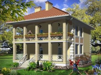 - На втория етаж, ако той не е таванско помещение, а пълноценна площ, подобно на първата, към стаите могат да бъдат прикрепени балкони на купчини, чиято основа е на ръба на слепата зона или до нея.