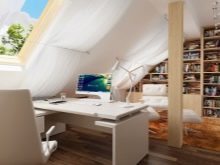 Таванското пространство обикновено е запазено за спалнята.. Но това е скучно и остаряло; там е много по -приятно да се оборудва импровизирана фитнес зала. Понякога обаче си струва да се обмисли идеята за поставяне на офис или голяма детска стая. Последното изисква значителна инсолация и следователно не може да се нарече евтино решение: ще ви трябват висококачествени панорамни прозорци с усилване.