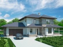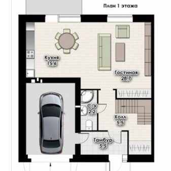 Тези, които строят двуетажни къщи от газобетон или блокове от пяна, също имат достатъчно средства, за да си купят кола. Ето защо е полезно да закупите прикрепен или вграден гараж.. Много по -удобно е да влезете в него от вкъщи, отколкото в отделна сграда.. В някои случаи мястото за колата е направено под формата на сенник. Има пример за такова устройство: с плоча, с автономна септична яма, с хол от 28 кв. м.