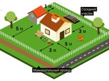 Ако на обекта се отглежда добитък (включително съседния), тогава прозорецът на жилищна сграда трябва да е на разстояние най -малко 10 m. Разстоянието от оста на ствола на храст или дърво до фасадата на жилищна сграда е разрешено най -малко 5 m; разстоянието до други стени не е специално определено.
