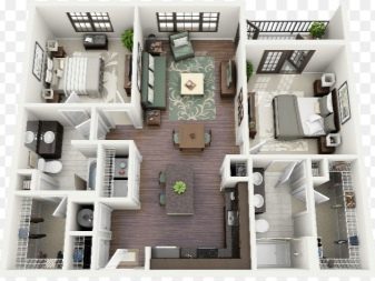 Останалите 60 м2 могат да се използват като склад (склад) и допълнителна всекидневна. Ако за складово помещение са отделени 15 м2, тогава останалите 45 м2 ще служат като впечатляващо пространство: тук можете да оборудвате две цели стаи или да направите обща стая, зонирана за различни цели.