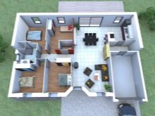Къща 8х12 с таванско помещение като втори етаж или два пълноценни етажа – ще задоволи всички основни нужди на своите собственици. В двуетажна къща, площта на всеки от етажите е само 96 м2, ще има кухня-хол, няколко спални, антре и всички помощни помещения.