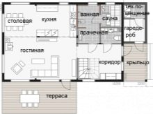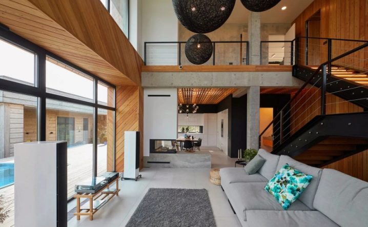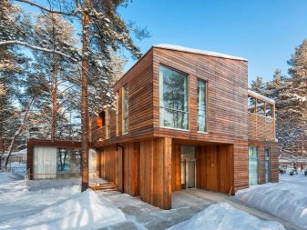 Къщата има строго правоъгълно оформление, изглежда страхотно на фона на дивата природа. Това са малки сгради с панорамни прозорци, минимална декорация на фасади и голямо количество изкуствено осветление.. Малката площ на стаята се компенсира от малък брой интериорни елементи. Това създава светла, чиста стая за хората да живеят комфортно..