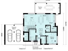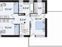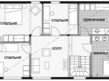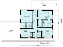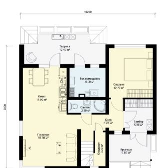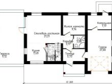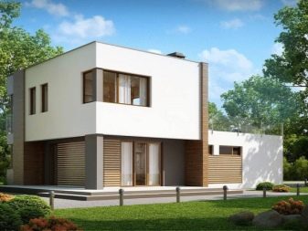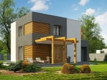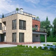 Това е компактна, но удобна сграда. Неговият малък размер му позволява да побере основните помещения и няколко хола. Къщите са чудесни за временно или постоянно пребиваване на малко семейство.. Когато планирате квадратна къща, е важно да вземете решение за покрива – ще бъде ли използван или не. Вътрешното оформление също зависи от това. Трябва да се вземе предвид безопасността чрез инсталиране на огради на покрива, ако там ще бъдат поставени зони за почивка..