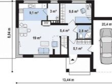 Най -често това е тясна конструкция, подходяща за изграждане на малка удължена площ. В същото време къщата има доста голяма площ и е подходяща за семейство с няколко деца.. Удълженият дизайн ви позволява да изградите вграден гараж в къщата.