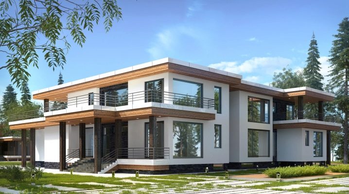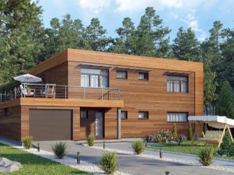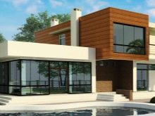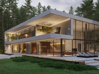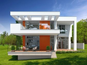 Такива проекти имат известна строгост, следователно, те не създават много уют в стаята. Но този дизайн е по вкуса на любителите на архитектурните изкушения. Домовете имат външни басейни, просторни тераси или други луксозни предмети. Фасадите на високотехнологичните сгради имат текстурирани облицовки върху идеално гладки стени.