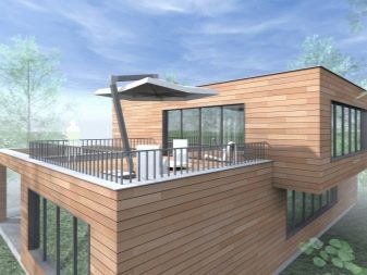 плоската повърхност на покрива ви позволява да изградите лятна зона върху нея с тераса, беседка или морава (важно е да запомните, че инсталирането на интериорни елементи на покрива ще изисква увеличаване на здравината му);