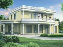 Плоският покрив може да се комбинира с нещо повече от модерен дизайн. Издълбани колони и обемни балкони ще се впишат идеално в проекта. Пространството на покрива е оградено с масивни класически огради. Този дизайн създава усещането за благородно имение, извисяващо се сред гората..