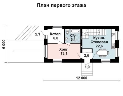 От минусите на двуетажни сгради с площ 6×12 m трябва да се отбележи необходимостта да се избират оформления без коридори, тъй като те ще заемат твърде много място, което може да се използва по-ефективно.