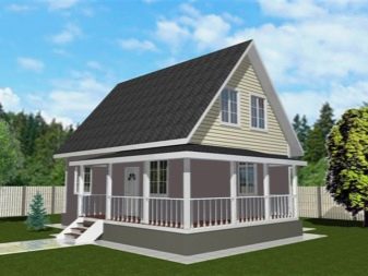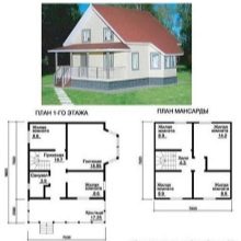 Красива сграда от бар с таван предлага поставянето на спални на горния етаж. Долната част на къщата може да се използва по -функционално. Проектът има просторна веранда на входа, а хол и тоалетна са разположени на приземния етаж. Всекидневните са изолирани, има четири стаи на тавана. Това е чудесен вариант за селска къща, която предлага сезонно настаняване..