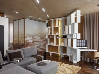 Всекидневната трябва да изпълнява няколко функции едновременно. Къща с този дизайн не предполага наличието на офис, така че работната зона може да бъде поставена директно в стаята за приемане на гости.