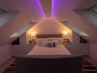 Тъй като таванската стая се намира на тавана, много проекти не предвиждат добро осветление на пространството.. Ако има малко естествени източници на светлина и стаята е тъмна, трябва да изберете красиви лампи. Интензитетът на светлината зависи от личните предпочитания на собственика на жилището.