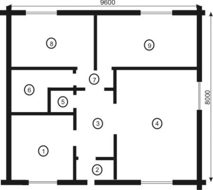 При създаването на план на къща с параметри 9×8 метра е необходимо да се вземе предвид, че някои помещения ще трябва да бъдат изнесени на улицата. Това е вярно, ако никой няма да живее в сградата през студения сезон.. Разделянето на функционалните зони предполага значителна икономия на свободно пространство.