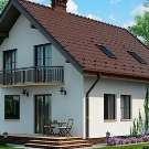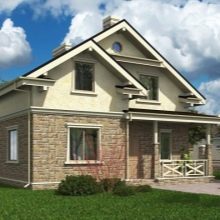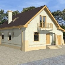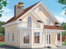 Друг вариант съдържа 5-метрова извита веранда. Пътят към преддверието е отворен от него. Освен това къщата има всичко необходимо за пълноценен живот: