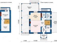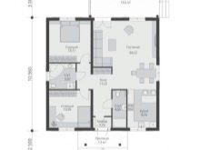 При изграждането на тухлена къща с 2 спални зони за тях могат да бъдат разпределени съответно 15 и 13 квадрата. Между тях има баня, което е доста удобно от практическа гледна точка.. Жилищна площ 24 кв. m – тоест дори голяма компания от гости или голямо семейство могат лесно да се настанят в него.
