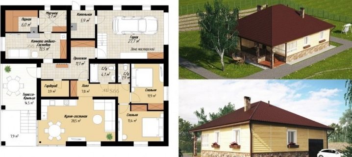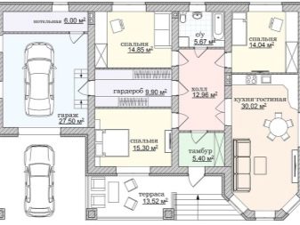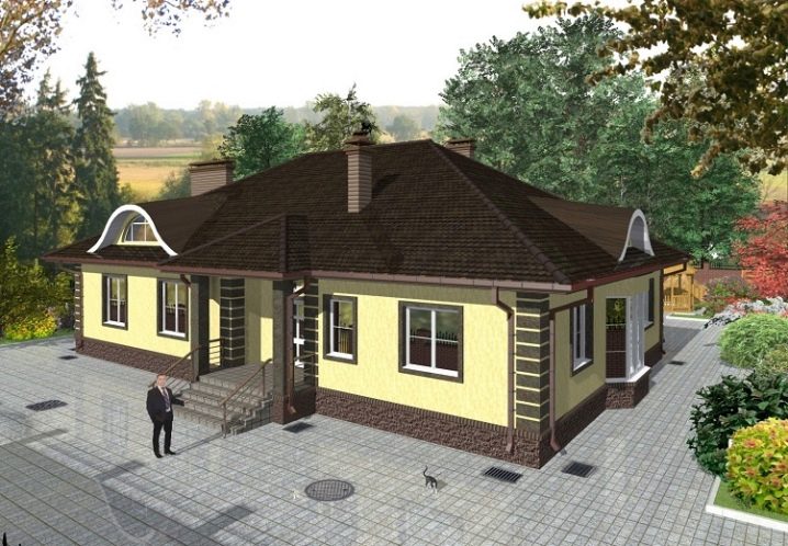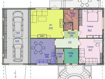 През лятото за отдих и различни дейности те използват и впечатляващите тераси, разположени от противоположните страни на сградата.. Кухнята и вестибюлът перфектно допълват създадената композиция. Изборът на опции за едноетажни къщи с отлично оформление и две стаи за спане, друга схема не може да бъде пренебрегната..
