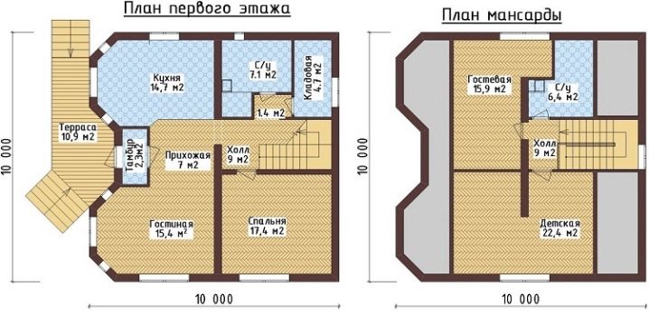 Проектите на едноетажни къщи 10×10 m могат да бъдат много разнообразни и да имат отлично оформление. Рамковите конструкции, изградени от дървен материал и блокове от пяна, се отличават, но това почти не се отразява в практическите аспекти на дизайна.. Наложително е също да се запознаете с плановете на къщи с таванско помещение и две спални..