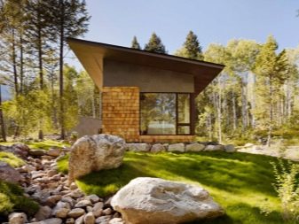 - Минимализъм. Стилът се характеризира със сбитост и гъвкавост. Такива дизайни често се създават с помощта на различни естествени материали, включително камък, стъкло, дърво. Когато изграждате къщи в този стил, трябва да се придържате към една цветова схема..