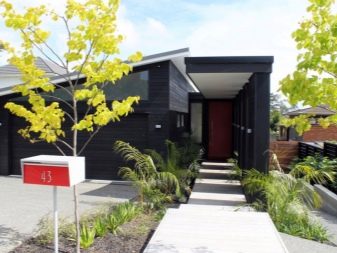 В този случай фасадата може да бъде направена от обработено дърво. Отворите за врати и прозорци могат да бъдат декорирани в тъмна палитра.