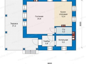 Проекти на едноетажни къщи с размер 8х8 метра