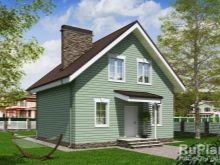 Къщата, построена по рамкова технология от профилиран дървен материал, съдържа всичко необходимо за семейство с едно дете. Широко стълбище води към верандата, където можете да подредите няколко стола и малка масичка за кафе за събирания през топлите летни вечери. Долната част на терасата е напълно затворена от любопитни очи с ограда.