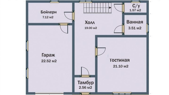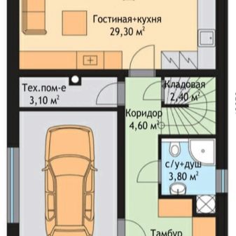 Оставено място вместо котелното на приземния етаж, използва се за устройството на обикновена или вита стълба за комуникация с основния (първи) етаж.