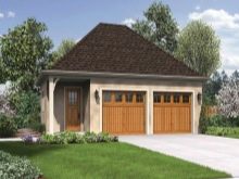Проектите на малки къщи с два гаража са много търсени. Оптималното решение в този случай е класическа къща и малък гараж с един вход. Планът предвижда няколко вентилационни прозорци, има малко място за стелажи. Такъв гараж се издига върху лента тип основа, външната декорация и покривният материал могат да бъдат избрани за общия стил.