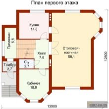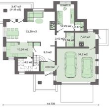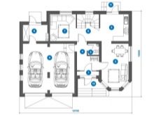 Това е решението за тези, които ценят практичността преди всичко. Паркингът в този проект е комбиниран със складово помещение, което при желание може да бъде допълнено с работилница.. По -добре е да отделите тези помещения и да направите отделни входове, след което можете безопасно да съхранявате храна в килера..