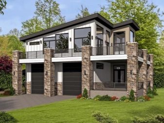 За да изберете стила на сградата, трябва да разгледате готовите проекти и да изберете посоката, която е по-близо до вас. Дизайнът на гаража директно зависи от това как е декориран вашият дом.. Проекти на къщи с гараж за две коли най -често се създават в определени варианти..