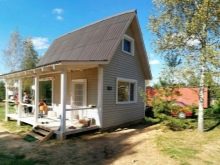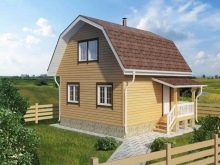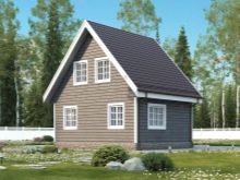 Първият етаж включва баня, кухня с функции в коридора, вторият – спалня. Тази сграда принадлежи към тавана, тъй като такива къщи не могат да се похвалят с пълноценен втори етаж. Но тази опция е подходяща и за бездетна двойка или самотен човек. Дори е възможно понякога да се приеме един гост, но при условие, че на градинския парцел има подходяща инфраструктура.. Общата стойност на строителството в момента няма да надвишава 500 хиляди рубли.