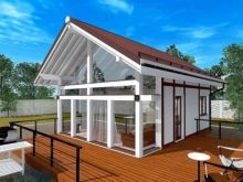 Както бе отбелязано по-горе, едноетажна къща 7х5 е кухня-трапезария, спалня и баня.. За други задачи ще трябва да направите отделно разширение – или отделна сграда, която служи като работилница, пещ, гараж, складово помещение. В същото време верандата ще остане на мястото си, но възможностите на конструкцията ще бъдат рязко ограничени. Дори организирането на зала без вестибюл е проблем. Най -вероятно залата ще се намира в отделна сграда..