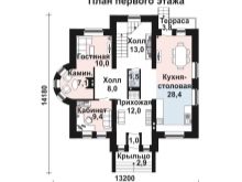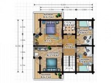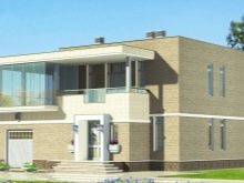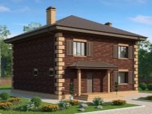 Можете да разгледате и друга версия на тухлено жилище – високо на 2 етажа с таванско помещение, еркерен прозорец и балкон, с обща площ около 170 м2. Такова жилище се откроява благоприятно с панорамните си прозорци. Друго предимство е наличието на ъглов камина, благодарение на което първият етаж е много по -удобен. Верандата е сравнително малка, но антрето и коридора напълно компенсират този малък недостатък. Кухнята-трапезарията е около 28 кв. м. приятно е да се готви и вечеря.