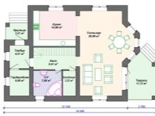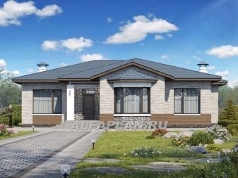 Атрактивно решение може да бъде едноетажна къща със сауна с площ 183 кв. м. В този случай разработчиците на проекта предвиждат, че той може да бъде изграден не само от тухли, но и от газобетон, както и от блокове от пяна, керамични или керамзитобетонни блокове. Организирани 2 покрити тераси, различаващи се по площ около 2 пъти. За уединение и тиха интелектуална работа, офис с площ от 14 кв. м.
