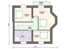 За съхранение на вещи беше отделена стая от 5,9 м2. Също на първия етаж имаше място за коридор, баня, коридор и кухня. Но холът се оказа най -голямата стая. На горния етаж къщите бяха оборудвани с: