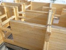 Лепеният ламиниран дървен материал може да се монтира доста бързо. Той ще запази геометрията си възможно най -дълго, всъщност през целия деклариран период на експлоатация. Възможно е да започнете да декорирате къщата почти веднага след завършване на стените. Сглобяването от ламели ви позволява уверено да премахнете образуването на пукнатини. И дори здравината на самия материал е с до 50% по -висока от тази на конструкциите от масивна дървесина.